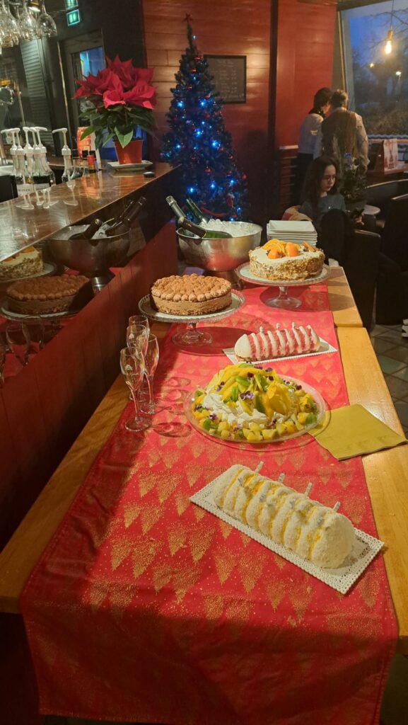 Notre salle d’une capacité de 60 couverts nous permet de moduler les espaces pour l’organisation d’évènements : Buffets, cocktails, repas de fête (gâteaux d’anniversaire sur commande à partir de 8 parts), repas de groupe professionnels ou privés.
